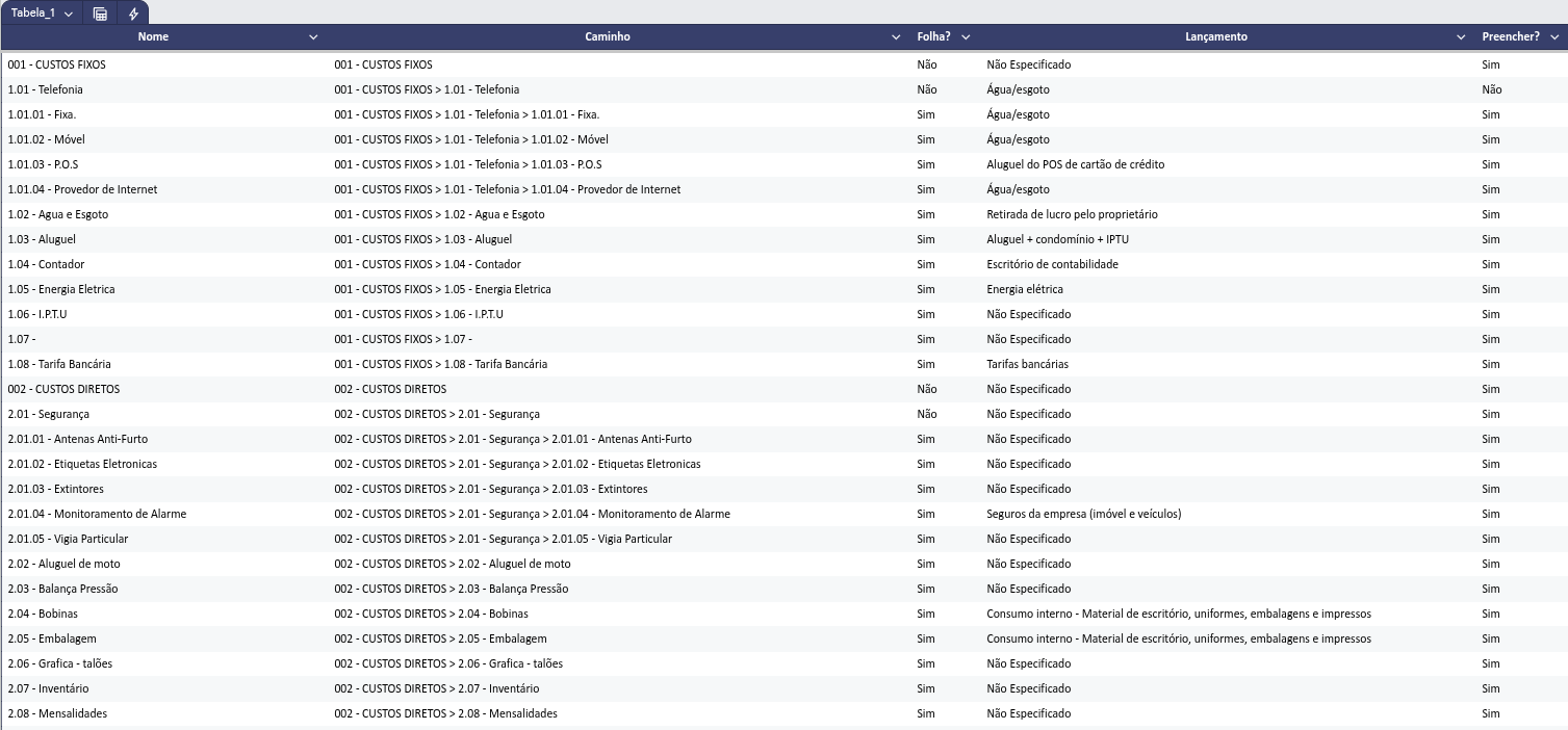 - Preencher?: Indica se aquele Plano de Contas pode ter o tipo de lançamento preenchido.