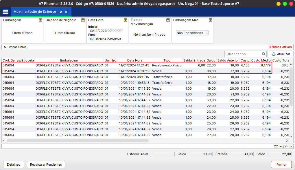 A7Pharma:Como o Sistema realiza o cálculo do Custo Médio Ponderado?