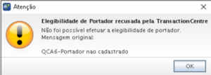 Ao tentar realizar uma pré-autorização, a PBM Transaction Centre retorna a mensagem de erro “Elegibilidade de Portador recusada pela Transaction Centre. Não foi possível efetuar a elegibilidade de portador. Mensagem original: QCA6-Portador nao cadastrado”.