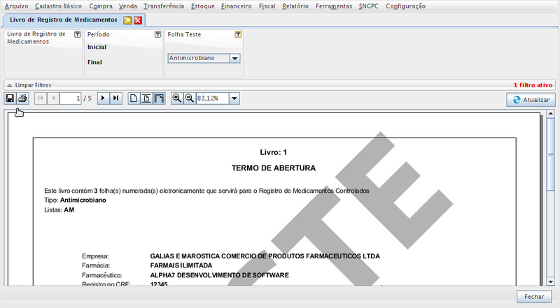 A7Pharma:Como criar um Livro Teste de SNGPC